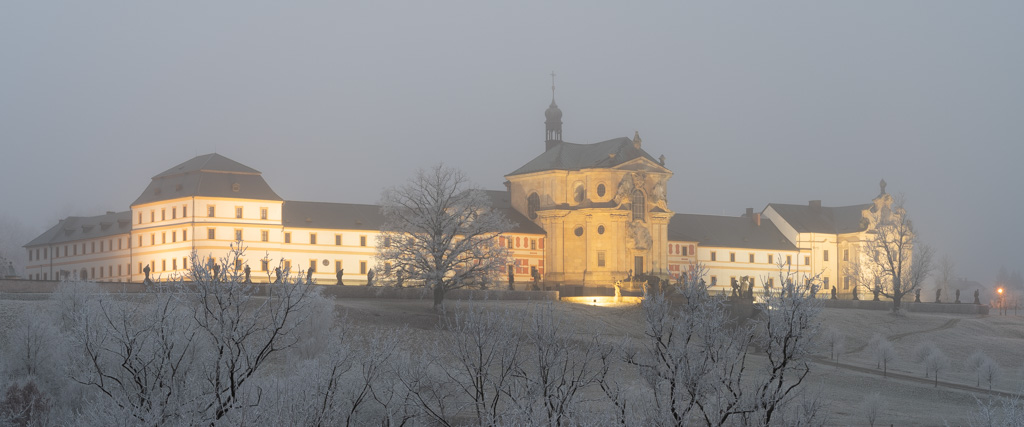 je bývalý zaopatřovací ústav pro vojenské veterány, provozovaný v letech 1744–1938 řádem milosrdných bratří. Kuks by byl zřejmě dodnes jen pomístním názvem u vísky Slotov, kdyby si jej za své letní sídlo nevybral František Antonín Špork, významný objednavatel uměleckých děl přelomu 17. a 18. st., jedna z nejzajímavějších postav českého baroka. Jeho zásluhou zde vznikl ostrov barokního umění, inspirovaný mnoha evropskými vzory, obraz ideálního světa, jehož součástí je krom života kypícího v hraběcí rezidenci a lázních také duchovní a charitativní složka v podobě kláštera s hospitálem, korunovaným hrobkou svého zakladatele a hřbitovem špitálních chovanců, věčností a smrtí. Smrt a život, zábava a rozjímání v důmyslné scenérii, tak jak to vidělo baroko.